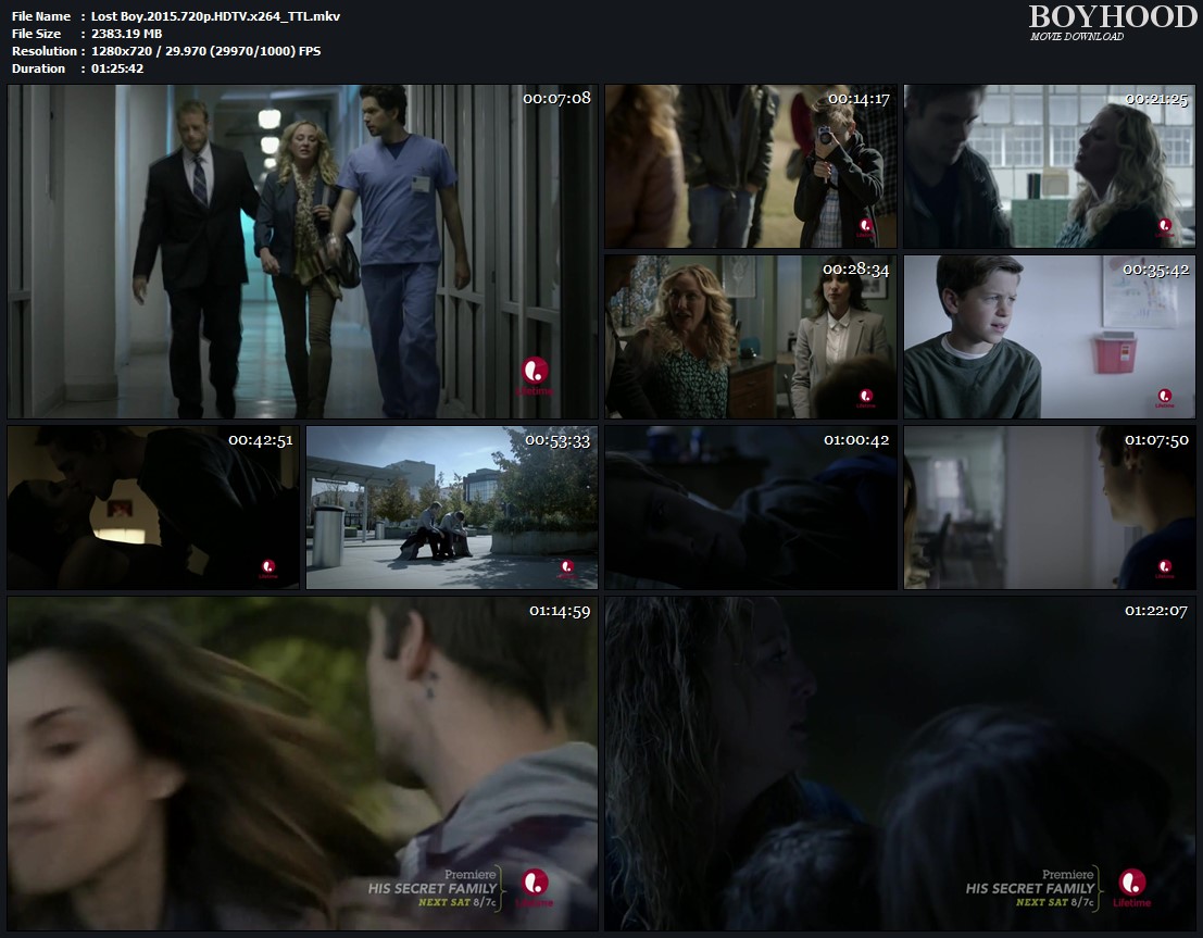 I found the film Lost Boy to be a really engaging thriller. There were a number of good twists in the story, which isn’t always the case in a TV movie. In particular,I liked that it didn’t wrap up in a neat and tidy way – that was this some mystery at the end. I don’t mind (in fact I often prefer) that you don’t know everything at the end of the story. The writing, especially with the dialogue, is quite strong. I enjoyed the use of the old home movie footage. Lost Boy is well worth watching. The movie isn’t the standard, “based on true events” Lifetime movie of the week although it wasn’t far removed from real life either. I thought Matthew Fahey was excellent as Mitchell, “the lost boy.” I hadn’t heard of him before but I suspect I will be seeing him in more roles in the future. Virginia Madsen and Mark Valley also worked well together too as the now-separated parents and Sosie Bacon was good at the rebellious teen sister.
