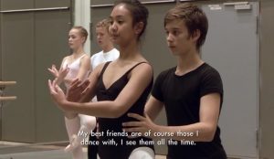 As the documentary unfolds, however, so we understand that the focus of attention is actually on the relationship between the three protagonists – Lukas, Sylvert and Torgeir. From a mixed-race background, Sylvert wishes he could be 100% Norwegian so that he could find a girlfriend. Sometimes his desire to continue ballet wavers slightly, but he misses the camaraderie as much as the training. Torgeir, the tallest of the three, is perhaps the most potentially talented dancer; but eventually it is Lukas who advances the most, as he obtains a place at London’s Royal Ballet School. Elvebakk’s film focuses on the pain of separation, as he leaves his friends back home in Oslo and moves to a student dormitory in the center of London.