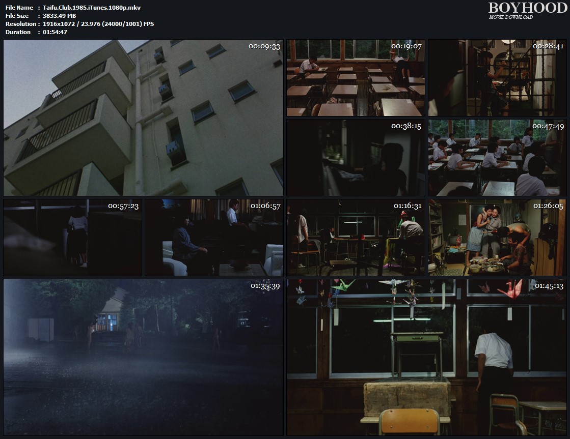 I’ve saw this film on tv back in the eighties so I hardly remember the details but the story is about a young group of teens during their adolescence and their experiences with the opposite sex. While the class is in school a storm raises and they have to stay in school during the typhoon. The story is shown in a very picturesque and (typical Japanese) silent way and won a movie price especially for it’s unconventional kind.