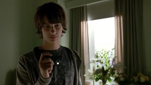 Young Simon (Devon Bostick) is enthralled with the Internet and creating videos to place on the Internet. His parents died in an automobile accident years ago and he has been raised by his uncle Tom (Scott Speedman), a angry young man who has never married and whose only other family member living is his father Nick (Thomas Hauff) for whom he has little affection. Simon tends to his ill grandfather, videotapes him telling stories about his daughter, Simon’s mother Rachel (Rachel Blanchard), swearing that Simon’s father Sami (Noam Jenkins) intentionally caused the fatal accident, not unlike a terrorist action. At school Simon takes French from teacher Sabine (Arsinée Khanjian) who encourages Simon’s penchant for drama by encouraging a story Simon has created: he postulates that Sami placed explosives in Rachel’s bag while pregnant Rachel flew to Israel with the intention of exploding the airplane killing 400 people. Simon takes his developing tale to the Internet chat rooms where the story then leaks out to the parents of the teenagers chatting. The ‘news’ results in Sabine being fired from her job. Sabine visits Simon and Tom’s house disguised by an elegant burka, and encounters the angry Tom who had already had a previous encounter with Sabine over a towed car. The intensity of the make-believe story of Sami being a terrorist creates havoc in the town, between Tom and Simon, and with Simon’s relationship to his grandfather. There is a surprise twist to the true background of Simon’s parents, Sabine, Tom, and the grandfather and Simon’s fictional ‘play’ opens doors of emotional reaction from Simon’s internet chatroom experience and from all of the people involved in the story.